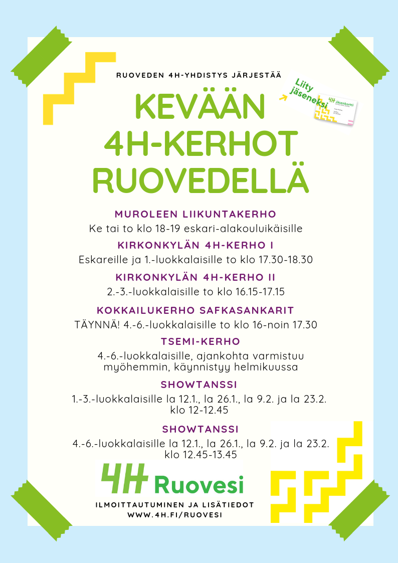 Tutustu Ruoveden 4H-kerhoihin, kerho-ohjelmiin ja kerhonohjaajana toimimiseen sekä ilmoittaudu mukaan täällä!