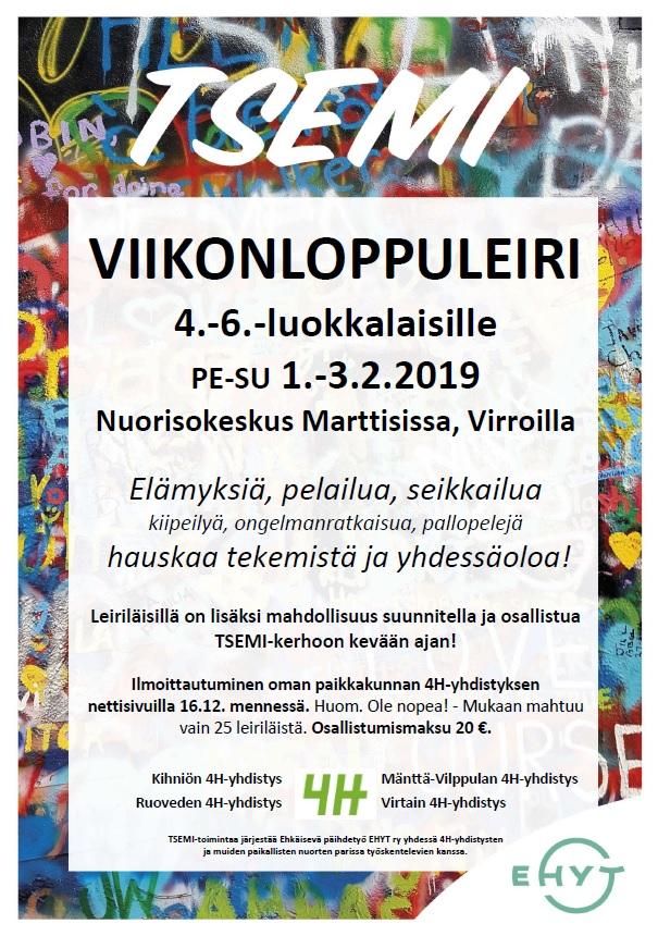 Tervetuloa mukaan TSEMI-leirille pe-su 1.-3.2. Nuorisokeskus Marttisiin!